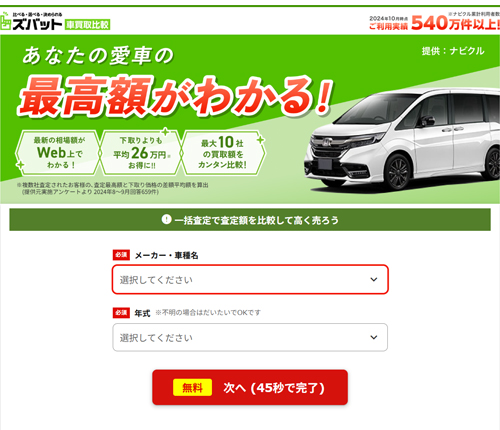 ご利用実績540万件を突破した、ズバット車買取比較。